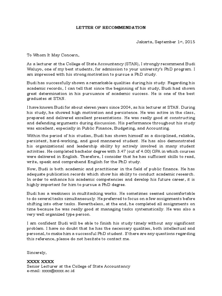Sample recommendation letter for phd student from professor. Anete lusina dear madam, i recommend ms. Things to include in a recommendation letter for phd. There is no doubt that it is the content and.